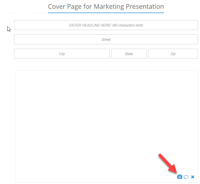 - 4) Once you’re on a page that allows for photos like the cover page you hit the camera icon to open the photo controls.