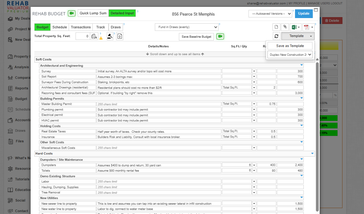 One important thing to note is that Rehab Valuator Premium allows you to create a budget that are specific for your project. Costs can be different from state to state, city to city, even house to house on the same block. But to get you started, we currently include templates based on completed projects that reflect mid market costs that you can edit to match your specific project.